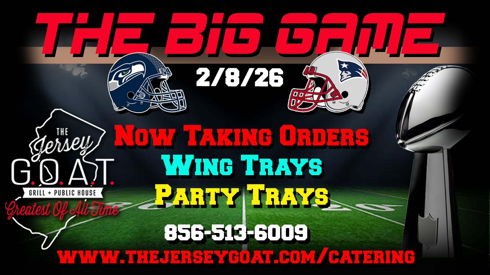 Big Game orders are open at The Jersey G.O.A.T. Wing trays, party trays, and all the essentials to feed your crew on game day. Lock it in early and let us handle the spread. 🏈