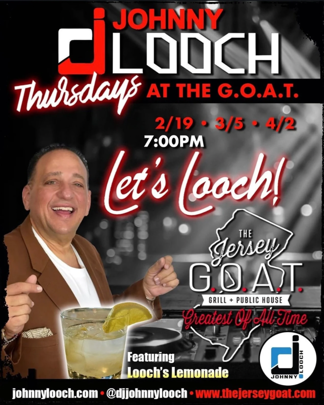 Johnny Looch is back at The Jersey G.O.A.T. bringing the vibes every Thursday night. Good music, cold drinks, and Looch’s Lemonade flowing all night. Pull up at 7 PM on 2/19, 3/5, and 4/2 and make it a Thursday tradition!